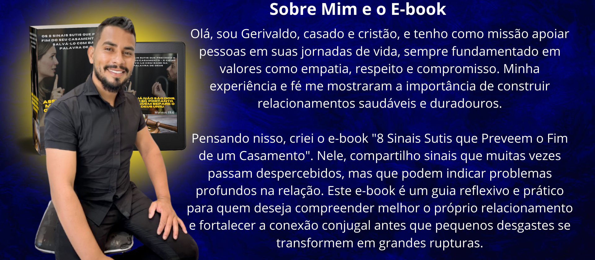 Este eBook foi feito para quem não quer desistir da família. Com base na Palavra de Deus, você vai descobrir os sinais silenciosos da crise, como restaurar o amor, reconstruir a confiança e proteger o coração dos seus filhos.